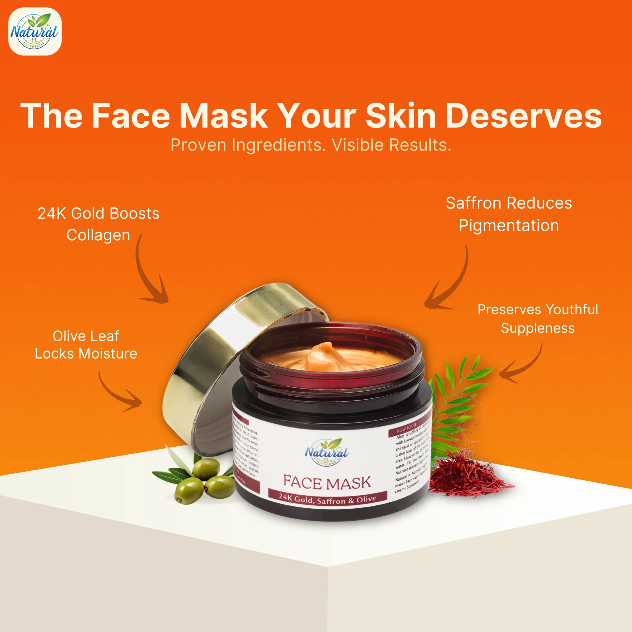 A glow-inducing mask treatment designed to awaken dull, fatigued skin. Infused with 24K Gold to detox and energize, Saffron to brighten and even tone, and Olive Leaf Extract to deeply nourish and hydrate — this luxurious formula refines texture, restores firmness, and leaves your skin visibly radiant, smooth, and renewed.