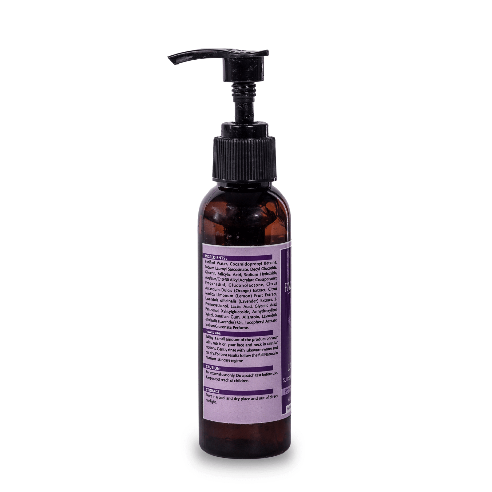 A soothing yet powerful cleanser enriched with Lavender Extract, AHA (Glycolic & Lactic Acid), BHA (Salicylic Acid), and PHA (Gluconolactone) to gently exfoliate, clear clogged pores, and combat acne—without drying out your skin. Formulated with Natural Citrus Extracts, Panthenol, and Glycerin to hydrate, soothe, and refresh skin while maintaining the moisture barrier.
